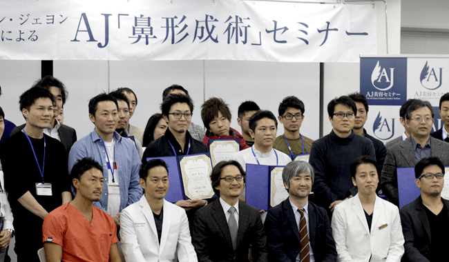 第ニ回 AJ鼻形成術セミナーでは、第1部に韓国鼻形成分野の第一人者で、東京美容外科の外部顧問でもあるジョン・ジェヨン医師による講義「Asian rhinoplasty : Rebuilding Nose」が、第2部に湘南美容外科 技術指導医 宮崎医師による「隆鼻術」および、東京美容外科 東京新宿院院長小野 准平 医師による「ジョン・ジェヨン式 鼻尖形成術」のLIVE施術が行われました。