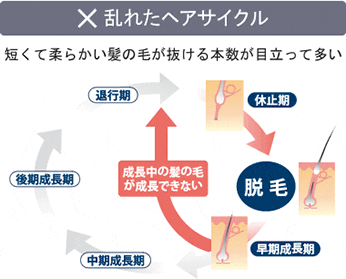 ホルモンのバランスの異常で、皮脂が過剰に分泌され、その皮脂が毛穴を塞いで炎症を起こすことから、髪が抜ける脱毛症のことです。