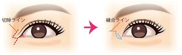 施術の説明:切除した蒙古ヒダを再度形成する手術