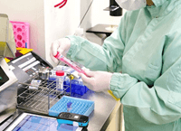 お預かりした「皮膚」は厚生労働省に認可された専門機関(株式会社セルバンクの細胞培養センター)へ移送し、細胞を抽出します。抽出された細胞は約10,000倍に培養して、特定細胞加工物(治療用に 用いられる真皮線維芽細胞)となります。